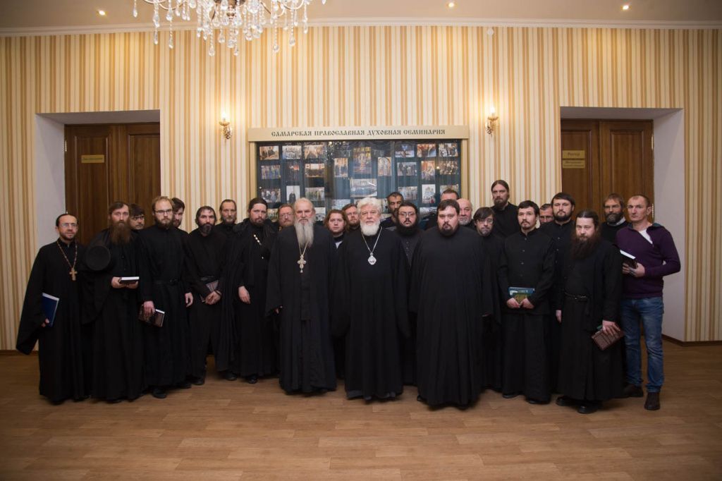 В присутствии митрополита Самарского и Сызранского Сергия обучаемые – монахи и иноки – исполнили несколько выученных духовных песнопений.