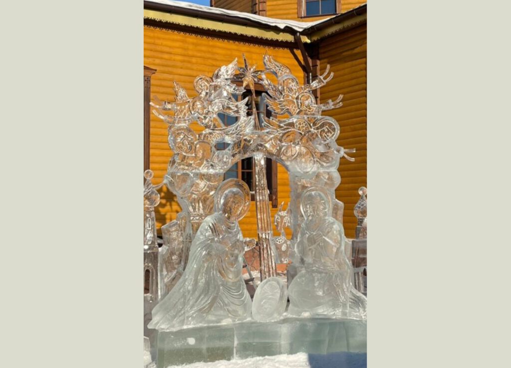 Приходы.ру 27.12.2022. В преддверии праздника на подворье Свято-Троицкого мужского монастыря в Белогорске была изготовлена четырехметровая ледовая композиция «Рождество Христово». Скульптуру установили у лицевого фасада храма в честь иконы Божией Матери «Скоропослушница».