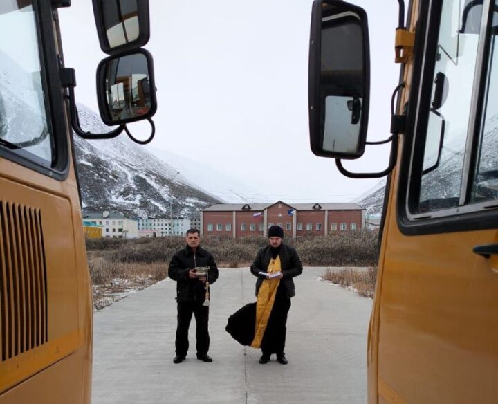 На Чукотке освятили новые школьные автобусы