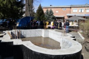 Временный храм установлен на территории травматологического центра в Донецке