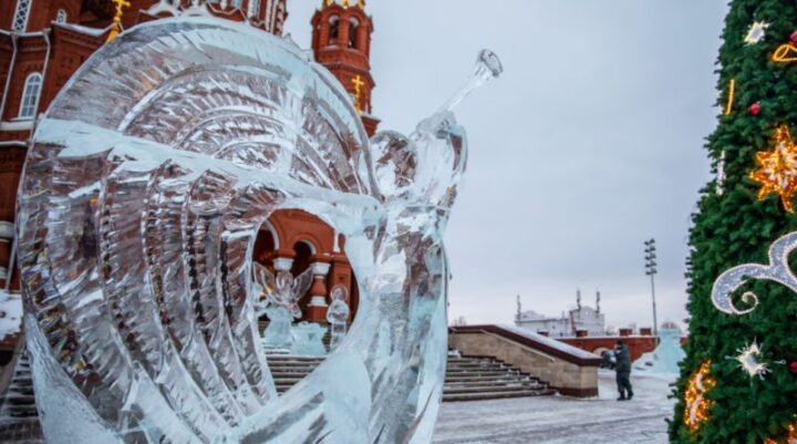 Ледовые ангелы украсили территорию ижевского собора