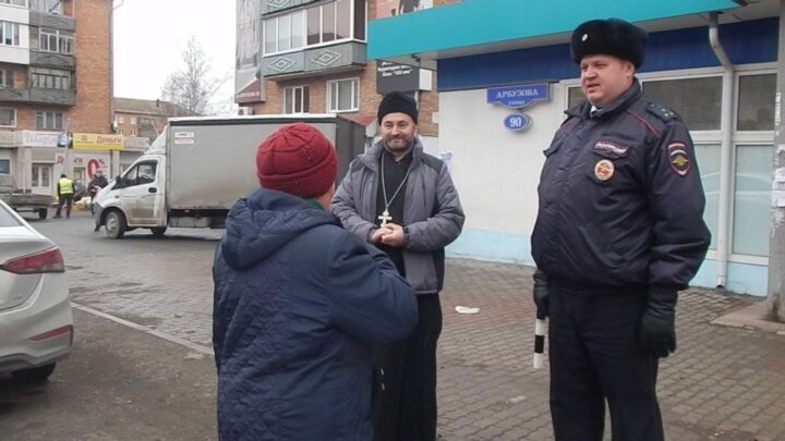Красноярский священник учил пешеходов переходить по зебре