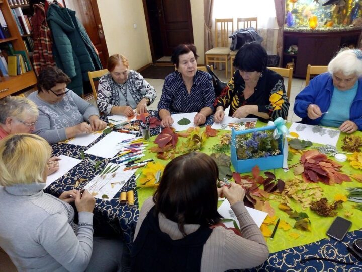 Приходские волонтеры научили пожилых людей создавать картины из осенних листьев