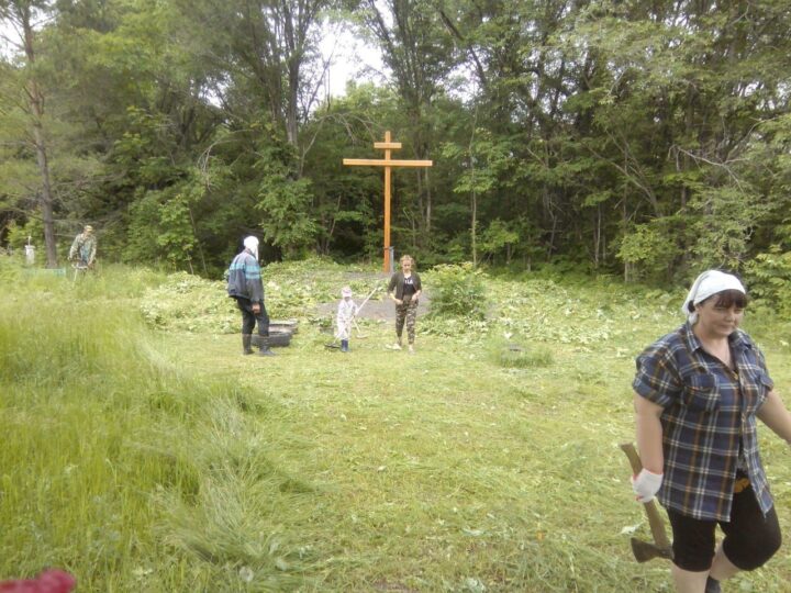 Прихожане приморского храма благоустроили территорию у поклонного креста в соседнем селе