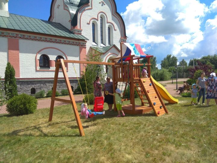 Детскую площадку открыли при сельском храме в Калужской области