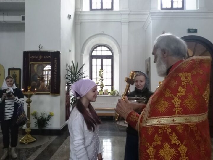 Священник провел экскурсию для пришедших помолиться перед экзаменом школьников