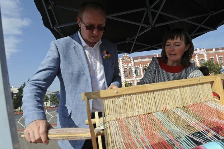 Преподаватель рассказовской воскресной школы научила главу города работать на ткацком станке