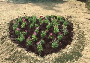 Добровольцы Симферопольской епархии высадили цветы на клумбу в виде сердца у детской больницы