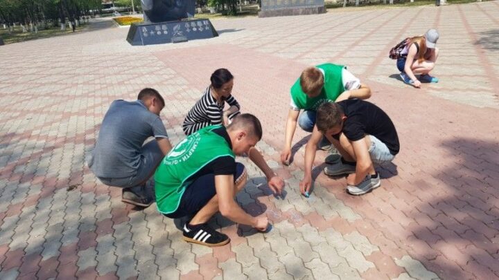 Активисты благовещенских храмов нарисовали на брусчатке нерожденных детей