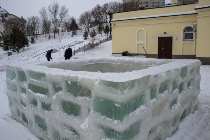 Необычная купель изо льда будет установлена возле главного храма Хабаровска