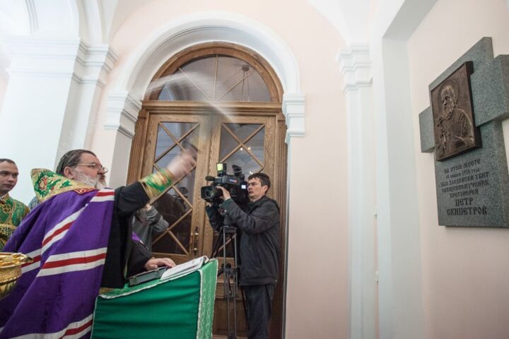 Мемориальную доску установили на месте смертельного ранения священномученика