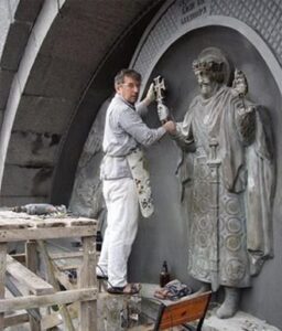 В Киеве восстанавливают разбитый вандалами памятник святому князю Владимиру