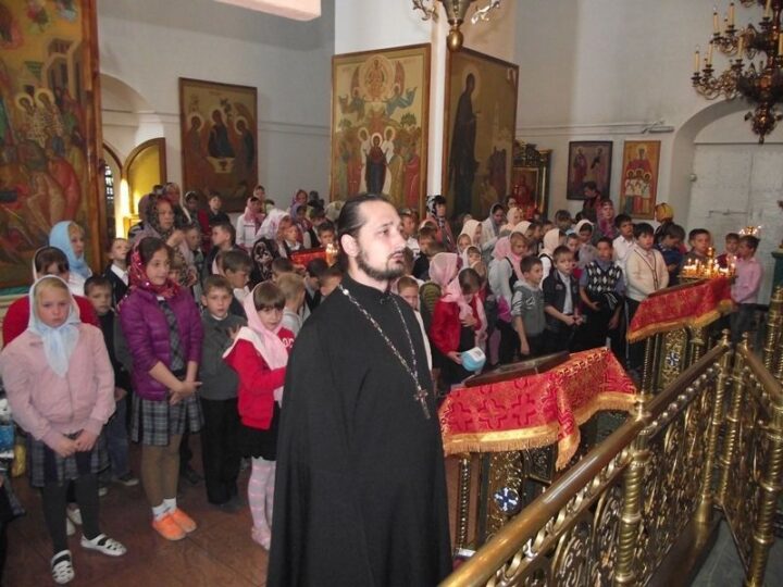 Школьники на миссионерской литургии