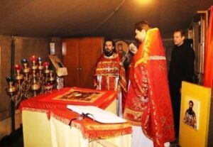 Литургию первого престольного праздника Ермогеновского прихода в донском городе Зверево совершили в армейской палатке