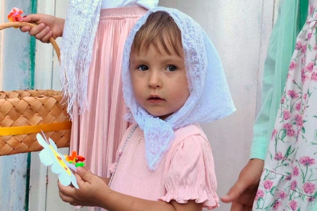 Рукотворные цветы подарили дети прихожанам по случаю церковного праздника