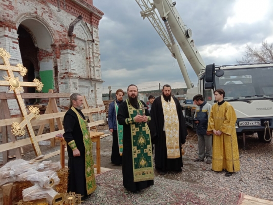 В Верхней Сысерти Свердловской области состоялось освящение и водружение креста, купола и шатра на центральную часть восстанавливающегося Успенского храма. Этого события прихожане ждали давно.