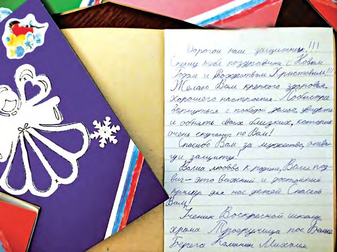 Любое известие из дома наших ребят окрыляет. Они радуются простым детским письмам, рисункам. Наш погибший солдат Александр в руке держал детское письмо, по местам сгиба были черные полоски, так много раз он его разворачивал… А когда был жив, говорил: «Этот ребеночек меня ждет, верит в меня, я не могу его подвести».